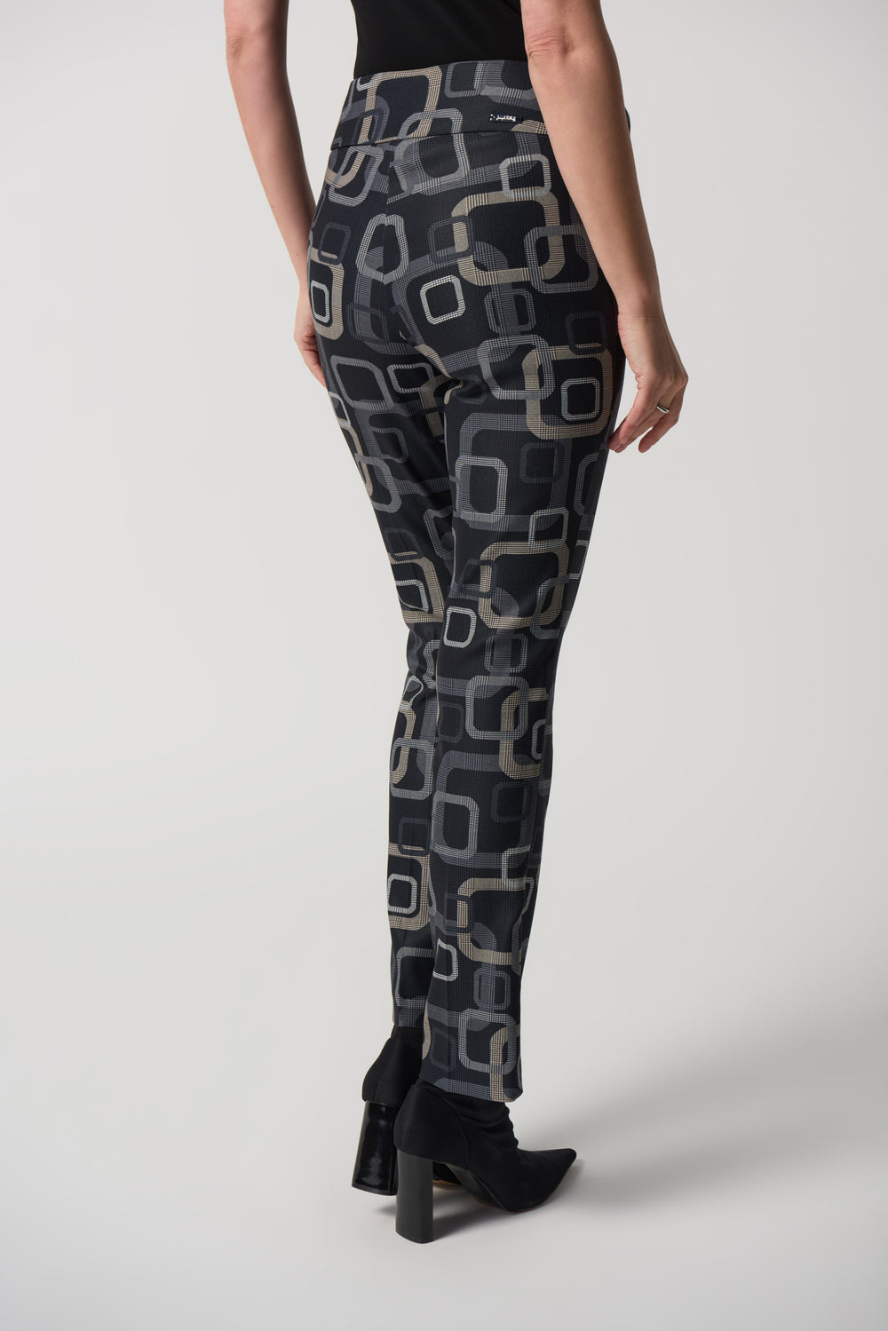 Sometimes the best inspiration for modern-day clothing are patterns of the past. These woven pull-on pants feature a retro plaid print that is classic enough to stand the test of time. Designed to shape and flatter your body, these pants come with a structured contour waistband. There is a subtle Joseph Ribkoff branded tab ornament at their back.