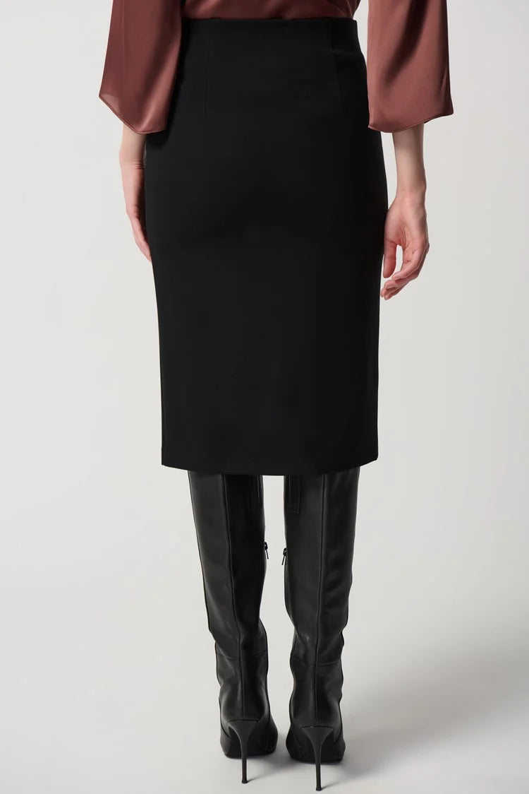 This polished, straight skirt is crafted from a cozy heavy knit fabric. Its covered elastic waistband ensures maximum comfort, while the front pockets bring an element of practicality. The piece is adorned with a beautiful turn-lock ornament at the front and sits just above the knee. Versatile and stylish, it's sure to become a wardrobe favourite.
