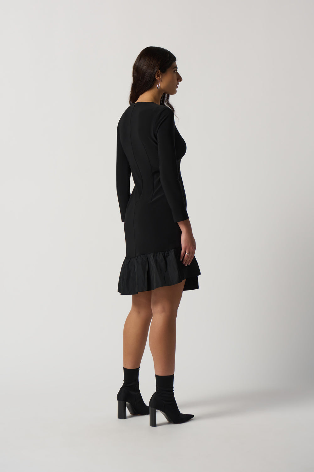 This fit-and-flare dress is the perfect mix of femininity and elegance. The bracelet-length sleeves and scoop neckline are both classic and stylish, while the asymmetrical memory ruffle at the hem adds a touch of whimsy. The back zipper opening makes this dress easy to slip on and off, while the unlined silky knit design keeps it light and airy.