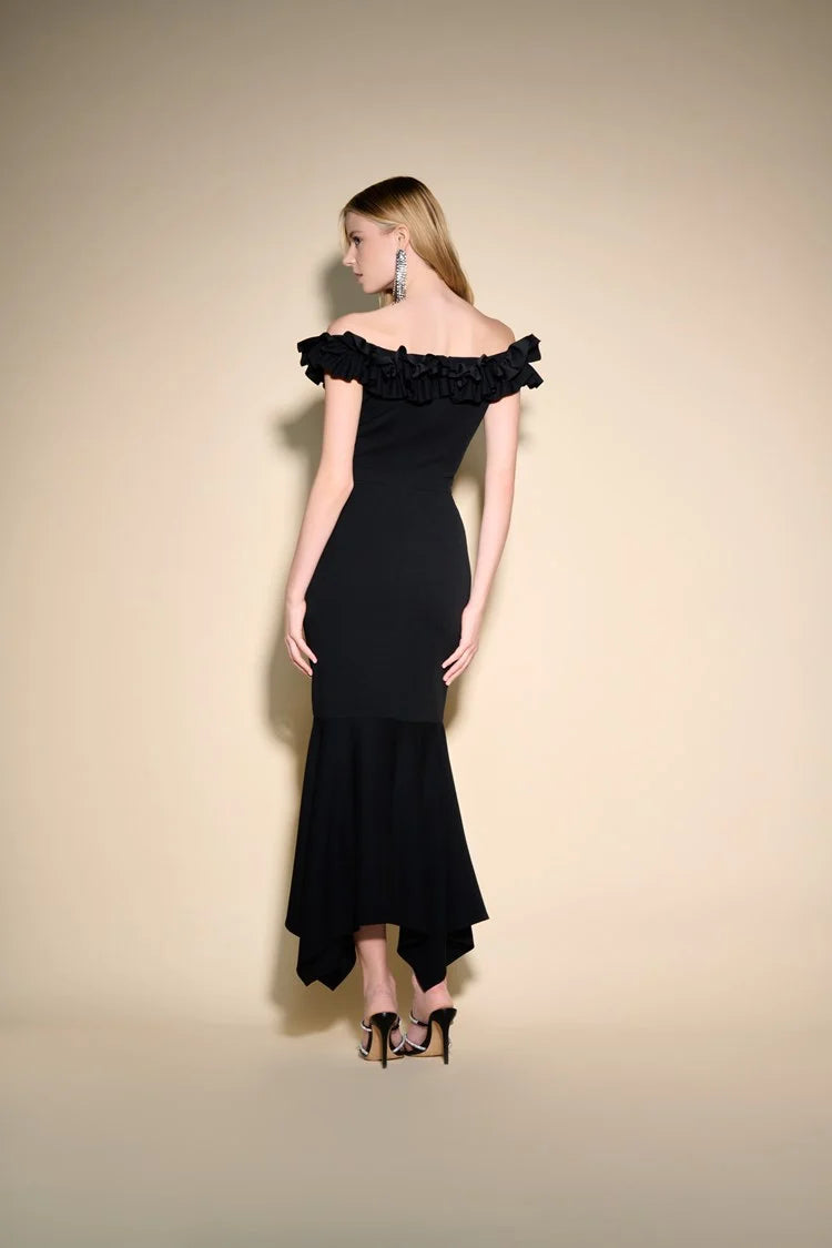 There's something so effortlessly romantic about this off-the-shoulder ruffle gown. The beautiful scuba crepe fabric drapes your body in the most flattering way, while the ruffled off-the-shoulder neckline is both feminine and playful. Part of the Signature collection.