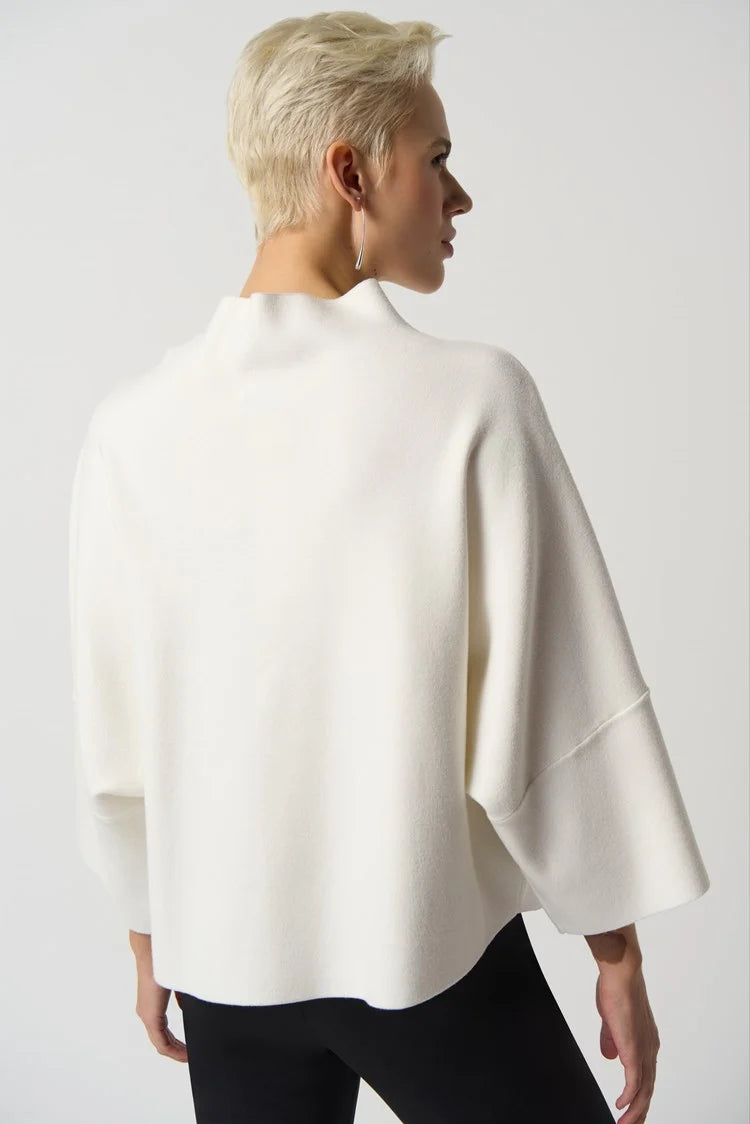 Your new go-to for elegance and comfort. This luxurious sweater knit top features a funnel collar, three-quarter bell sleeves, and a boxy silhouette. It's the perfect piece to elevate your everyday look.