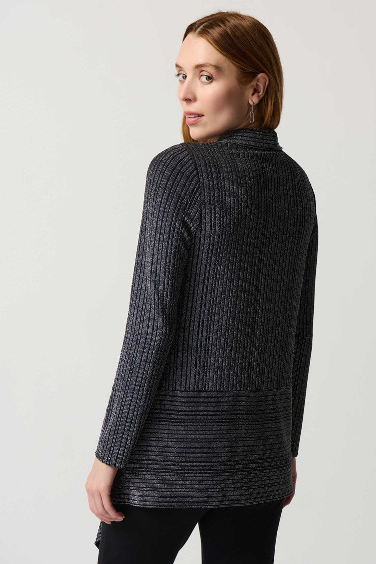 Cozy never looked so chic. This open-front jacket is made with luxurious novelty knit fabric and features long straight sleeves, a beautiful shawl collar and is unlined for a fun and easy fit. The high-low hem and metallic stripes add visual appeal to this ready-to-wear jacket.