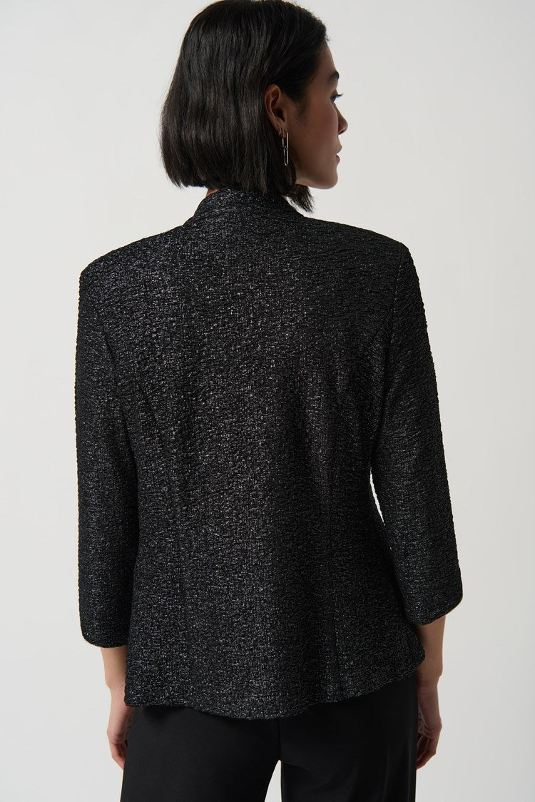 Elevate your daily style with this modern two-piece set, including a fitted jacket and a camisole. The fitted jacket is crafted from foiled textured knit, featuring a stand collar, hook and eye closure, and three-quarter sleeves. Elastic piping around the garment provides a comfortable and adjusted fit, while the scoop neckline of the camisole allows you to show off statement jewelry.