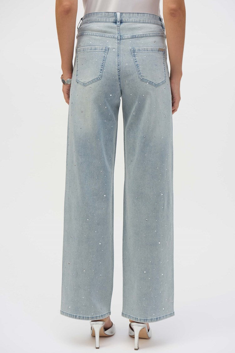 Get ready to shine bright! Our classic jeans have received a dazzling upgrade with all-over crystal detailing. Featuring an effortless wide-leg silhouette and crafted from soft stretch Repreve® denim, these jeans offer both comfort and chic style.