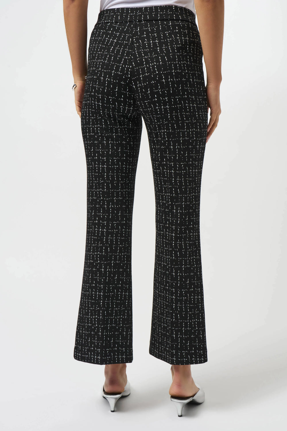 These jacquard knit pull-on pants bring a bold touch to any wardrobe. The garment boasts a striking checkered print that blends classic elegance with a modern twist. The flared silhouette offers a flattering shape, while buttoned faux pocket flaps add a hint of tailored charm.